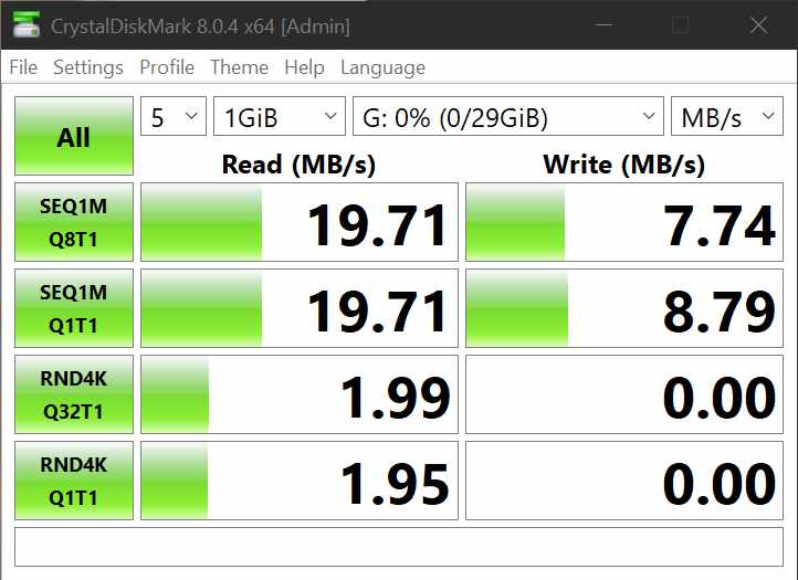 - Read: 19.71 MB/s