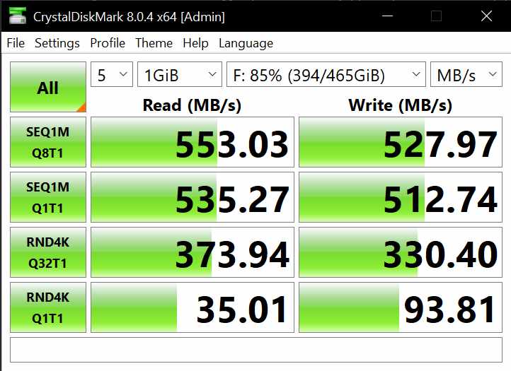 - Read: 553.03 MB/s