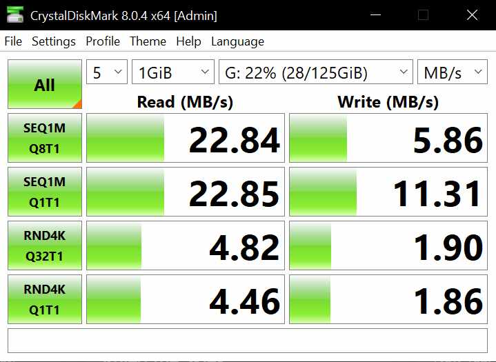 - Read: 22.84 MB/s