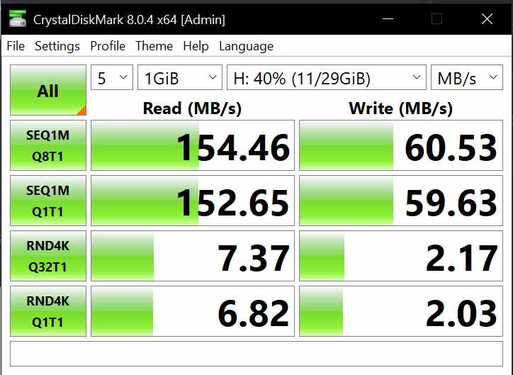 - Read: 154.46 MB/s